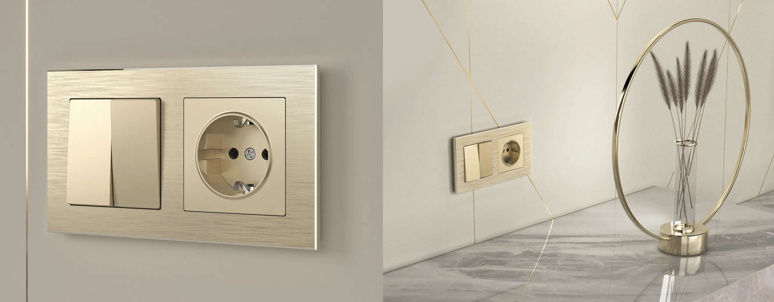 встраиваемые розетки и выключатели шампань металлик