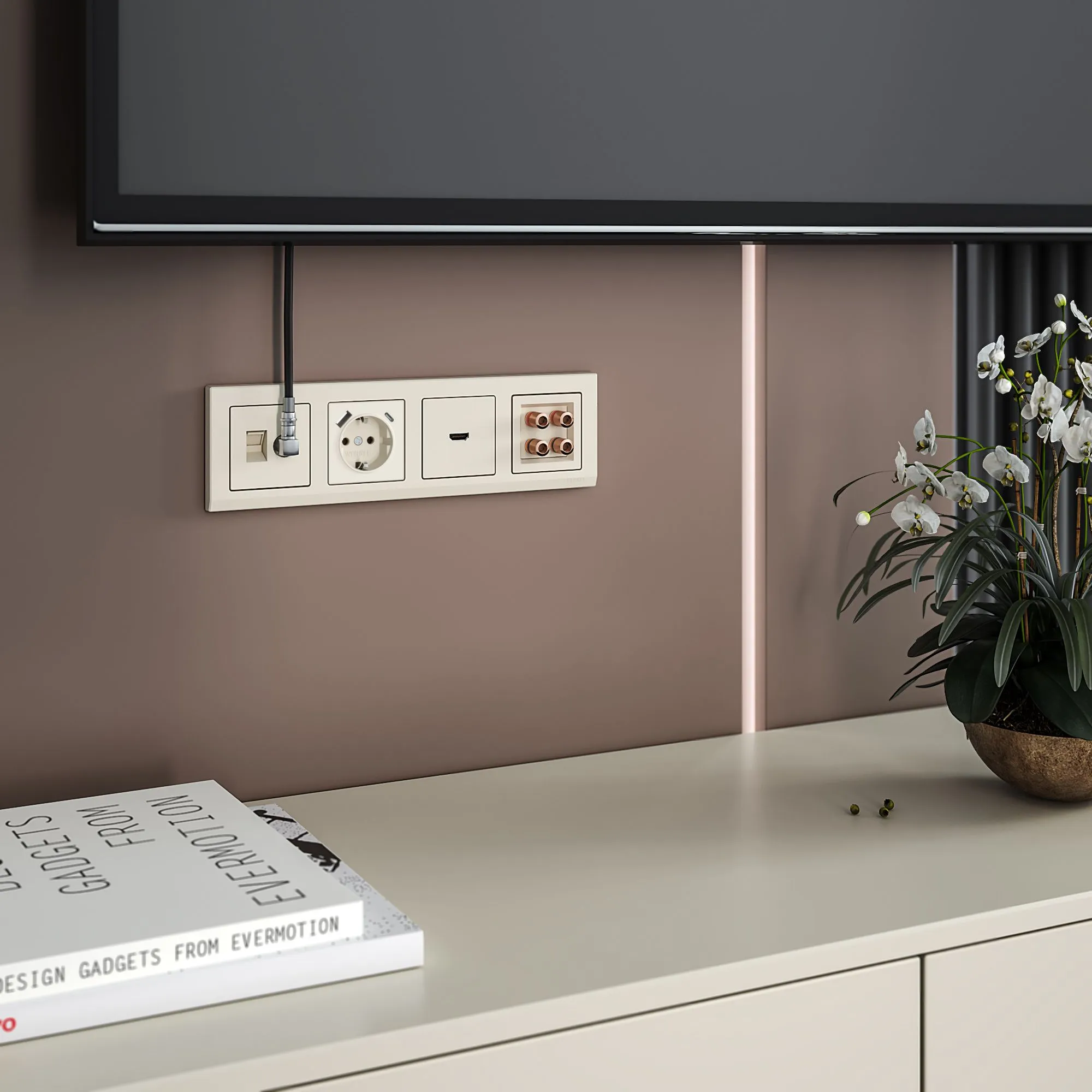 ТВ-розетка имеет удобное подключение и обеспечивает надежный контакт кабеля. Интернет-розетка RJ-45 6 cat. имеет высокую скорость передачи данных, до 10 Гбит/сек и соответствует категории 6А.