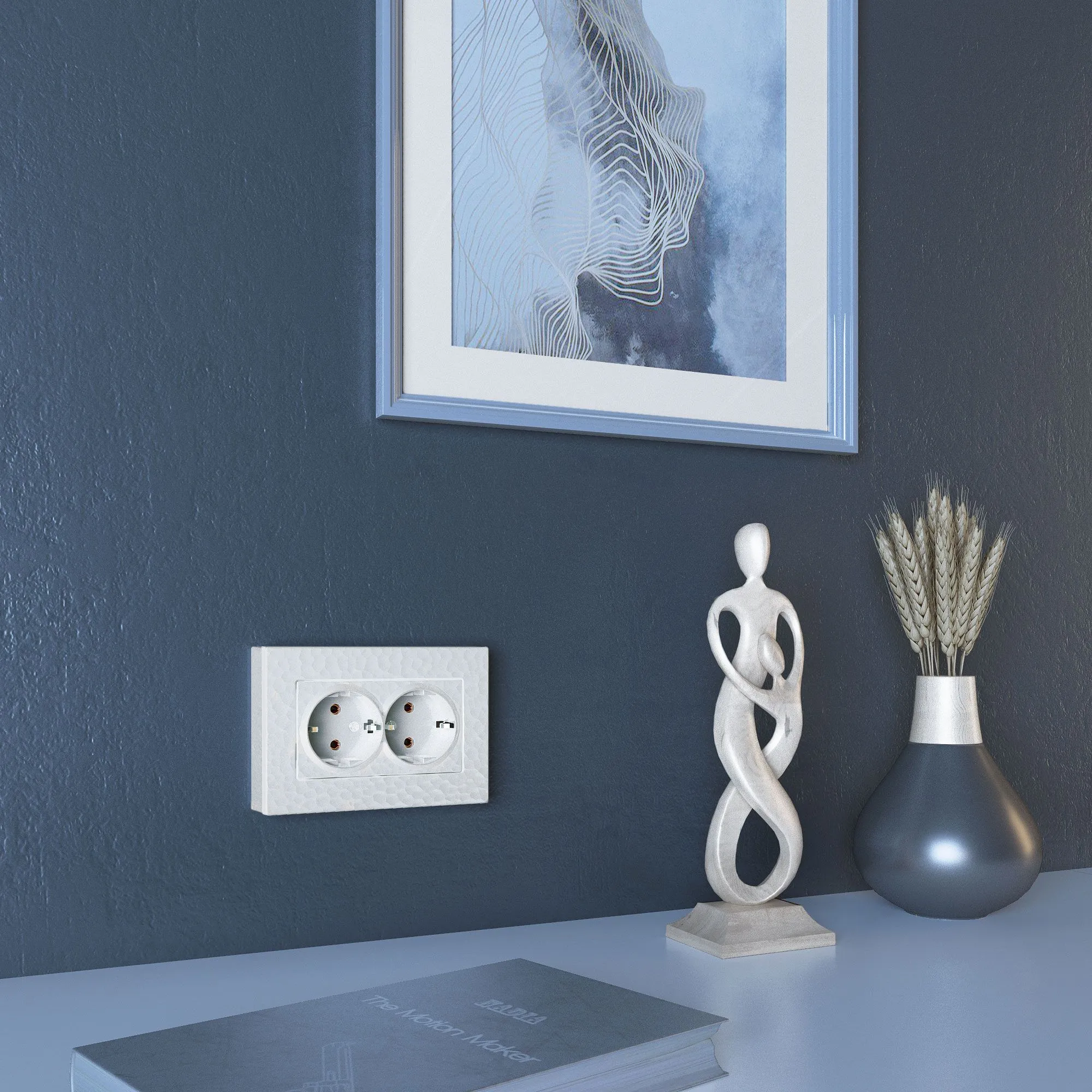 Важное преимущество: двойная розетка совместима с двойными рамками Werkel, что позволяет создавать индивидуальные композиции в едином стиле — от минималистичных до декоративных решений.