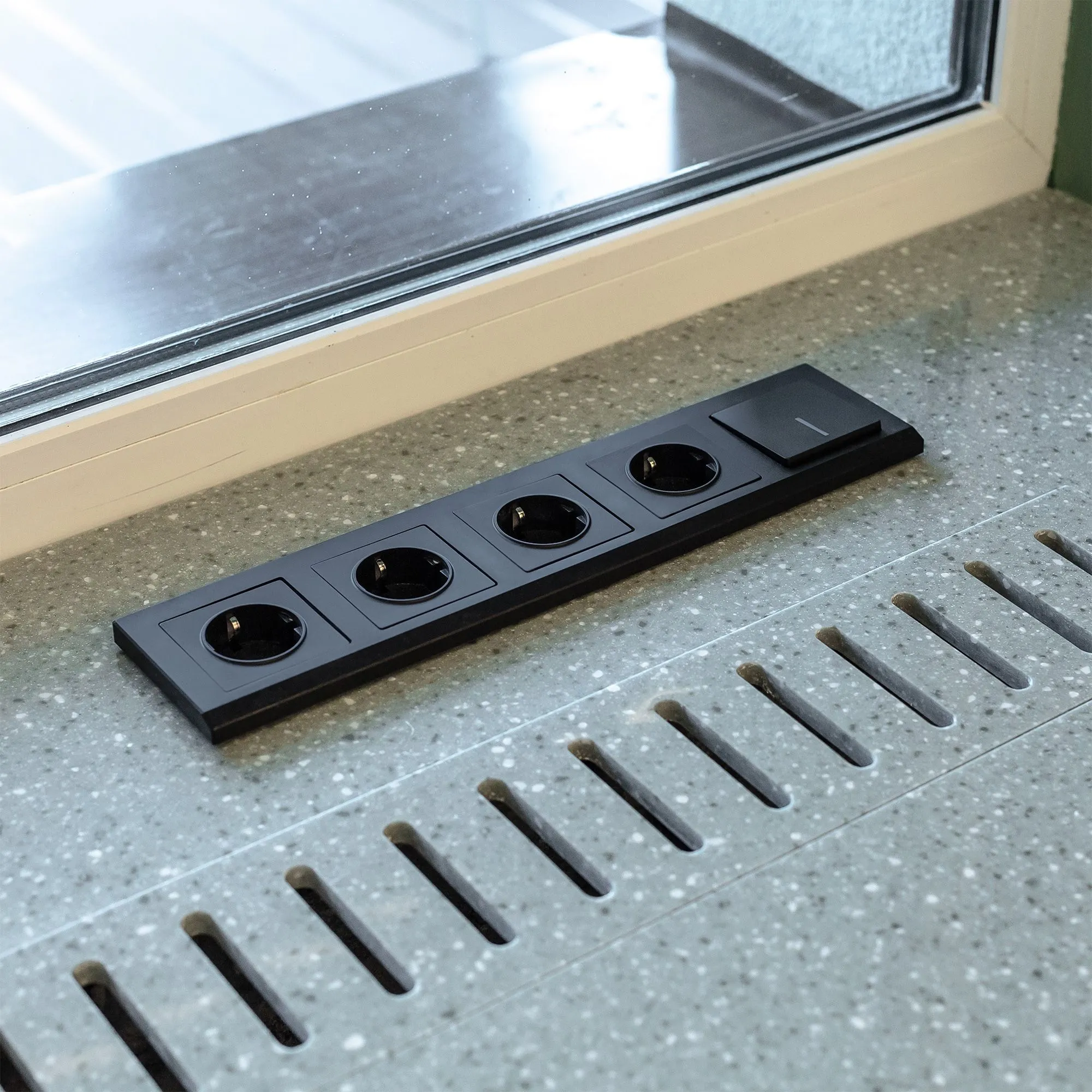 🔹 Нержавеющий металлический суппорт — гарантирует прочную и стабильную фиксацию в подрозетнике, исключает люфт и деформацию при установке рамки.