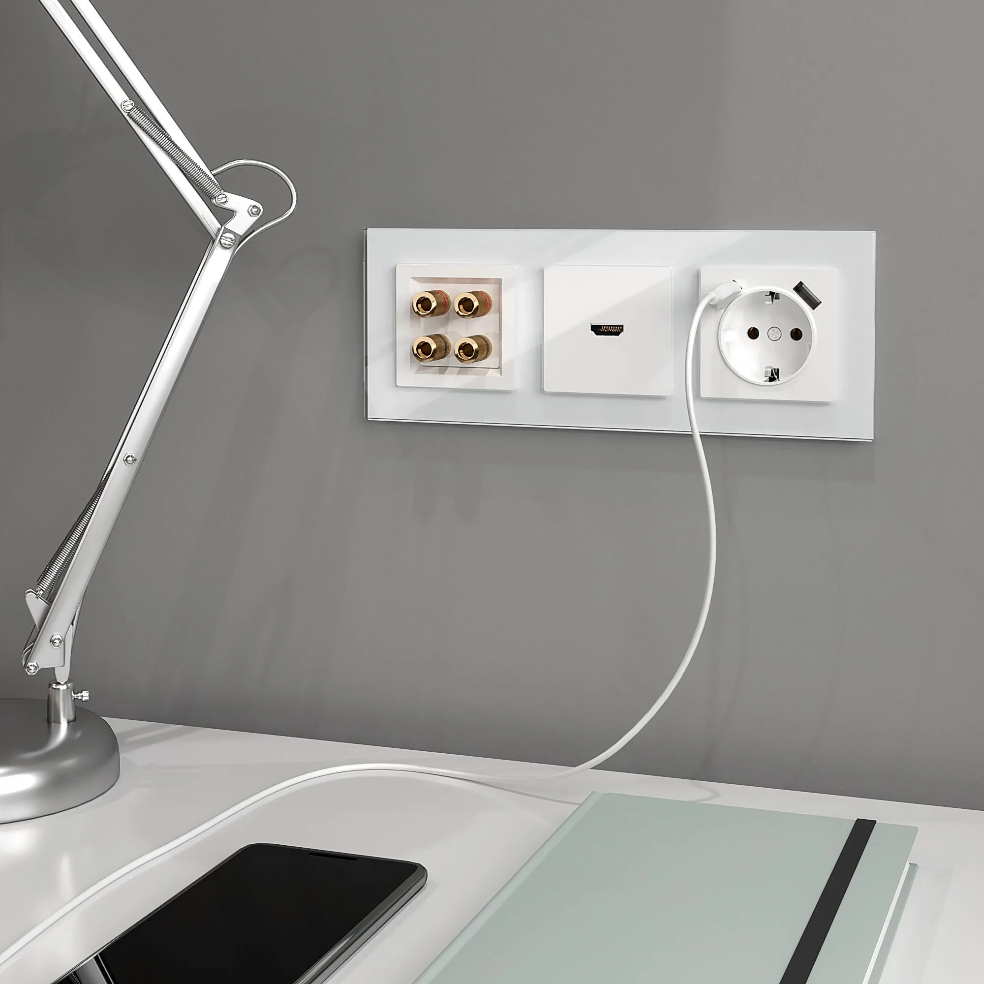 Встраиваемая HDMI розетка обеспечивает надежное соединение различных мультимедийных устройств, позволяя передавать аудио-, видео- и графическую информацию высокого качества через цифровой интерфейс. Это электроустановочное изделие применяется в квартирах, частных домах, офисных помещениях и устанавливается рядом с телевизорами и другой видеотехникой для облегчения подключения оборудования.