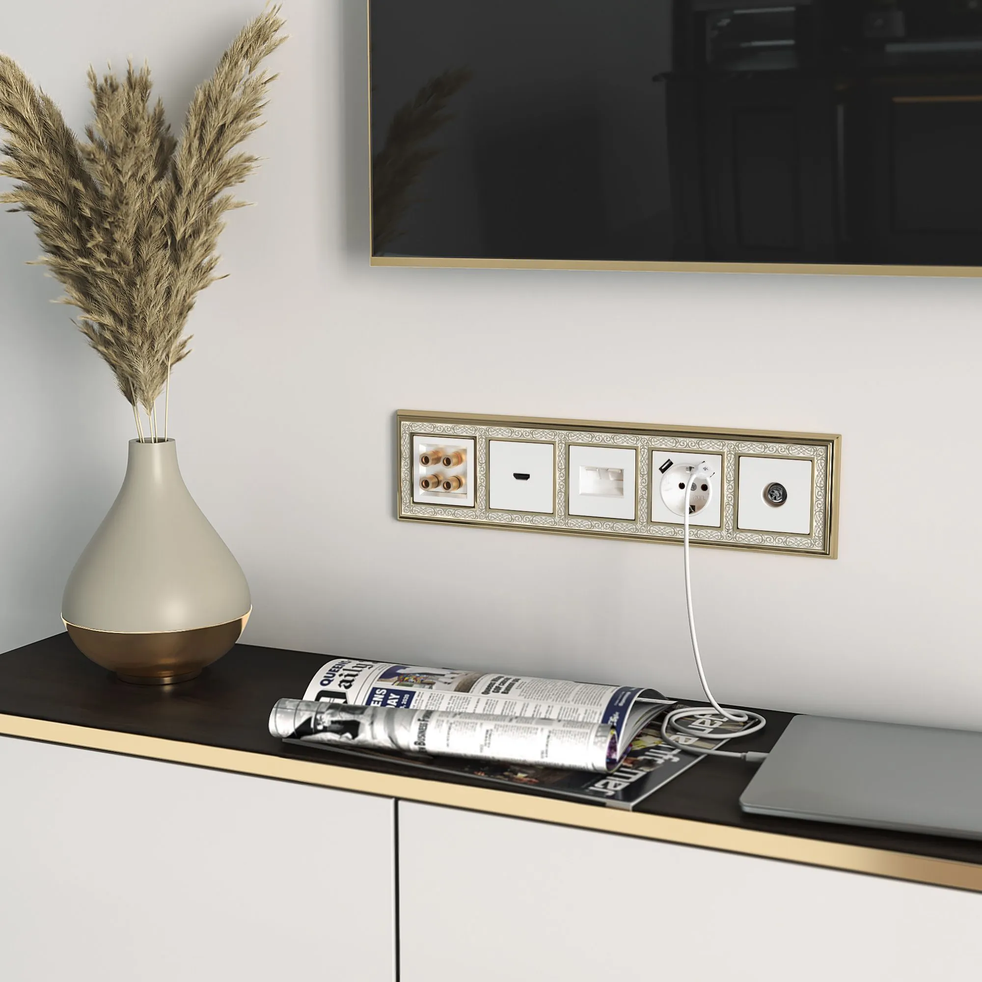 Лаконичная белая глянцевая лицевая панель гармонично сочетается с любыми отделочными материалами. Розетка полностью совместима со всеми рамками Werkel, что позволяет создавать индивидуальные композиции в едином стиле — от минимализма до премиум-дизайна.