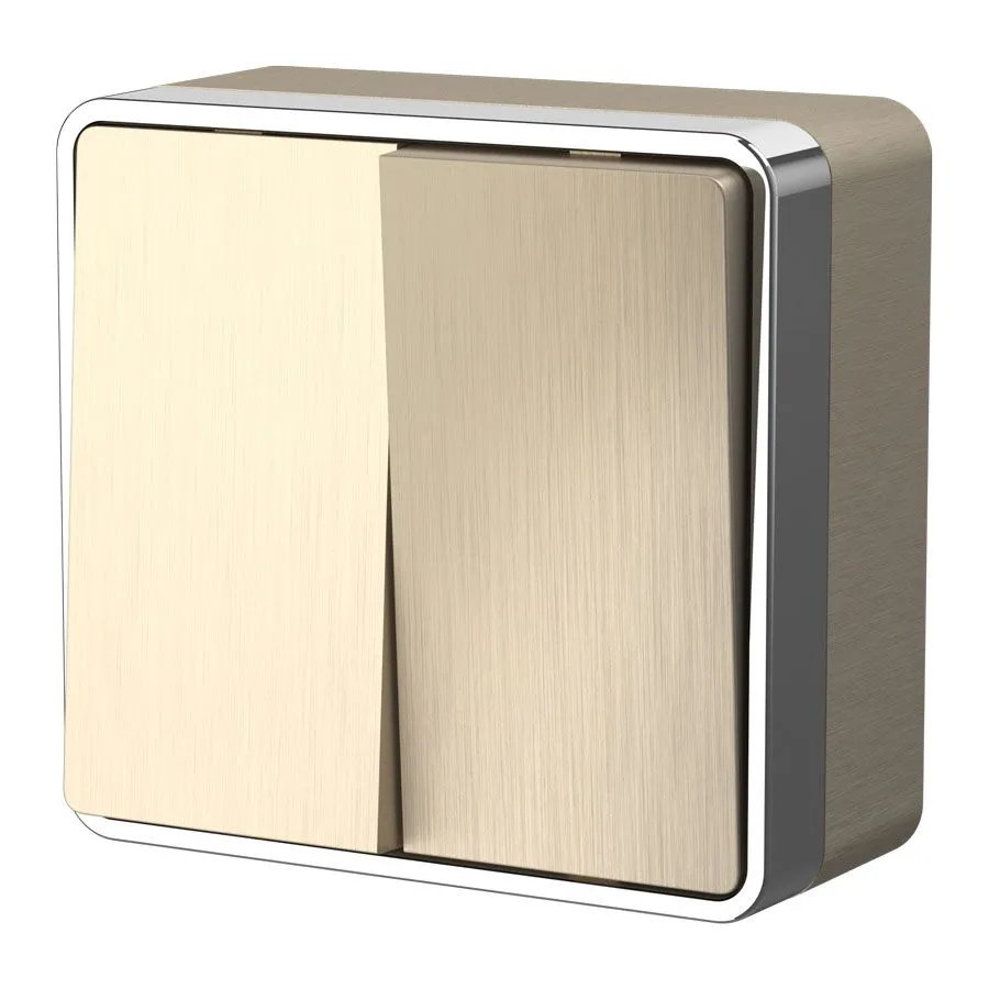 Этот накладной выключатель отличается высокой надежностью, безопасностью и эстетичным внешним видом. Рифленый корпус цвета шампань из термостойкого поликарбоната идеально вписывается в любой интерьер, будь то классический, современный или минималистичный стиль.