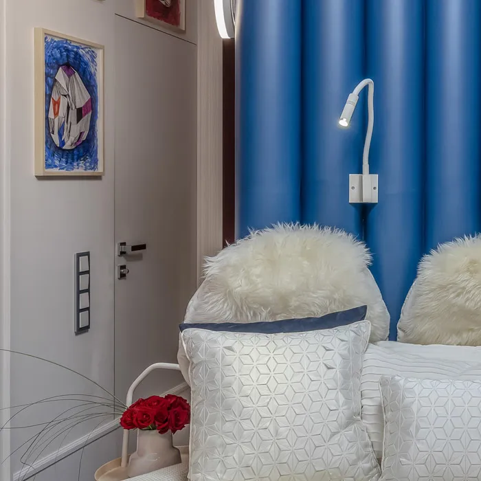 Благодаря продуманному дизайну и вниманию к деталям, спальня превратилась в идеальное место для отдыха и восстановления сил. Как отметила команда проекта, даже такие элементы, как розетки и выключатели, сыграли важную роль в создании целостного образа.