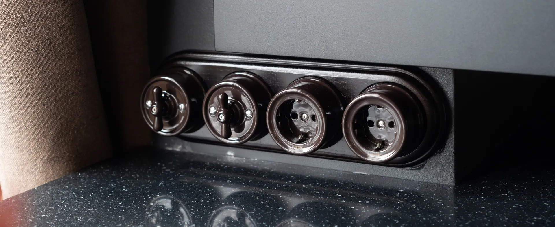 Особое внимание уделили электроустановочным изделиям. Для обновленного интерьера были выбраны механизмы в стиле ретро от торговой марки Werkel™. Коричневые керамические механизмы в сочетании с деревянными рамками серии Legend в цвете венге стали гармоничным дополнением лофт-стиля. Такие изделия не только подчеркнули индустриальный характер комнаты, но и добавили ей теплоты и уюта.