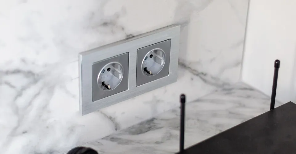 Для проекта были выбраны рамки, розетки и выключатели торговой марки Werkel. Механизмы с накладными панелями в цвете серебряный рифленый дополнены металлическими рамками из серии Aluminium . Их дизайн с эффектом шлифованной поверхности идеально сочетается с интерьером, дополняя металлические предметы мебели и декора.